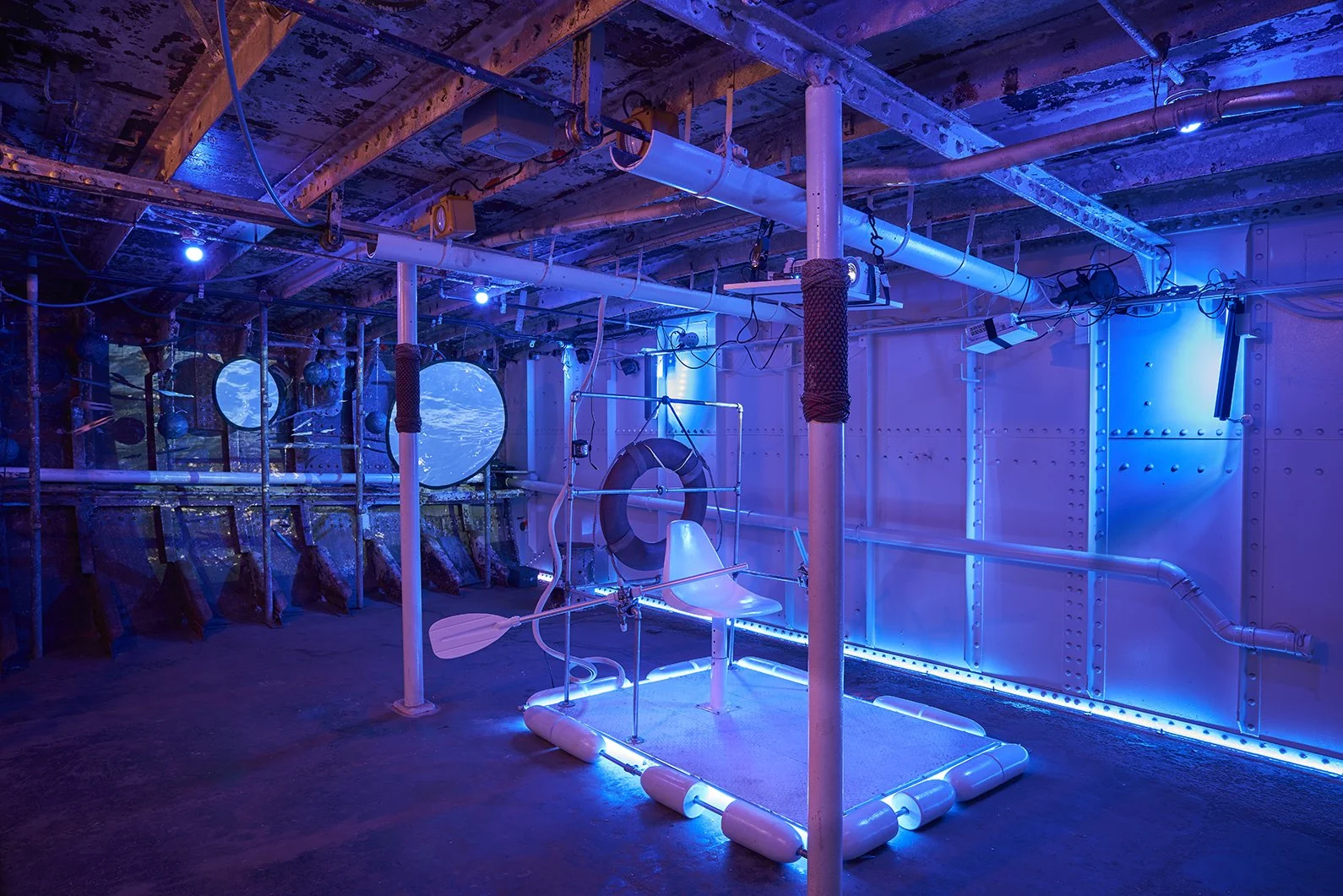 “River Dreams” combines technology with environmental themes. The juxtaposition between human-made and natural elements allows the artist to create what she calls “a new way of viewing.” On the front of the ship, visitors can look at Cassel’s “radar kaleidoscope” made of angled mirrors that reflect the